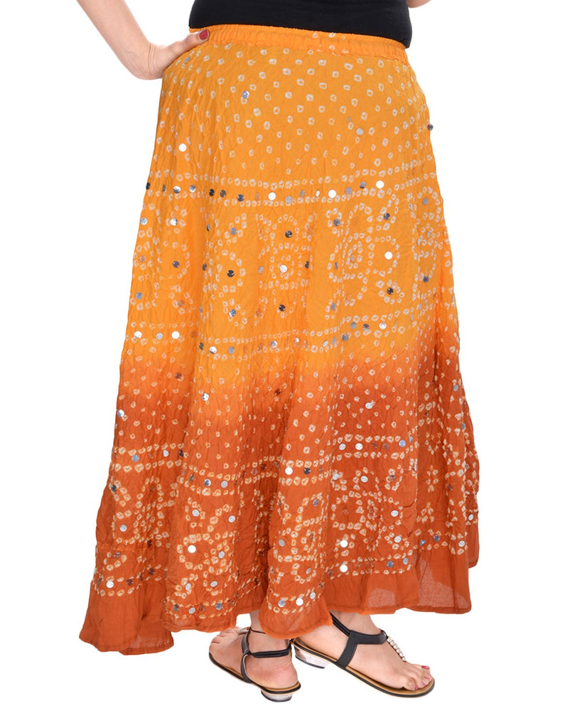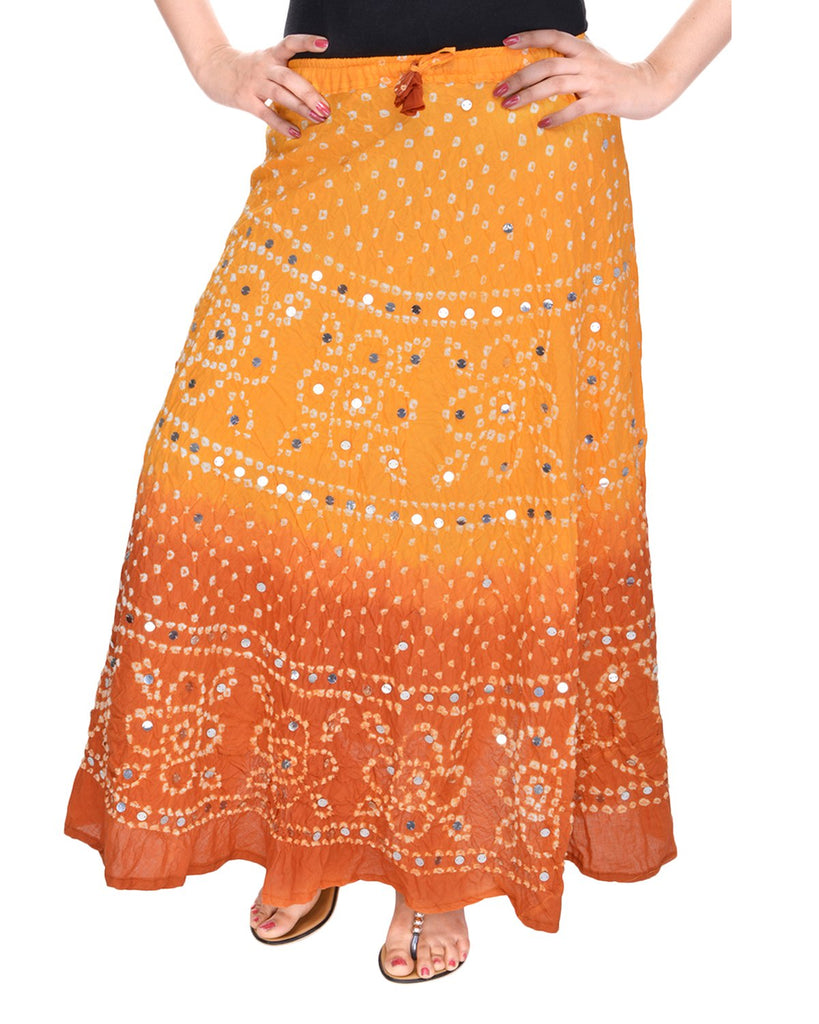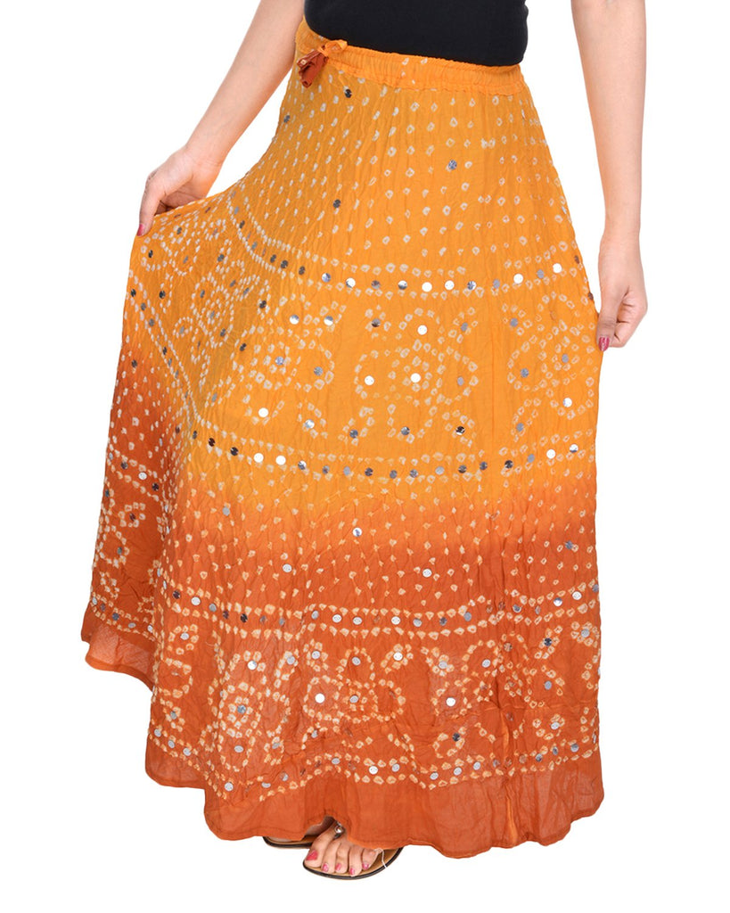 Details: Get a cool look in summers in this beautiful hand tie-Dye bandhej long cotton skirt with lovely hand work on it.