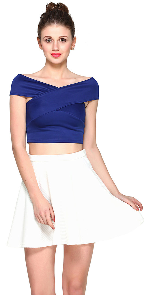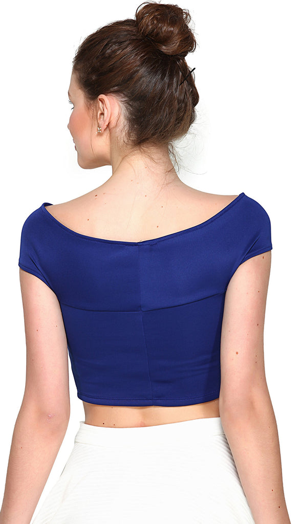 VeniVidiVici Blue Bandage Bardot Crop Top